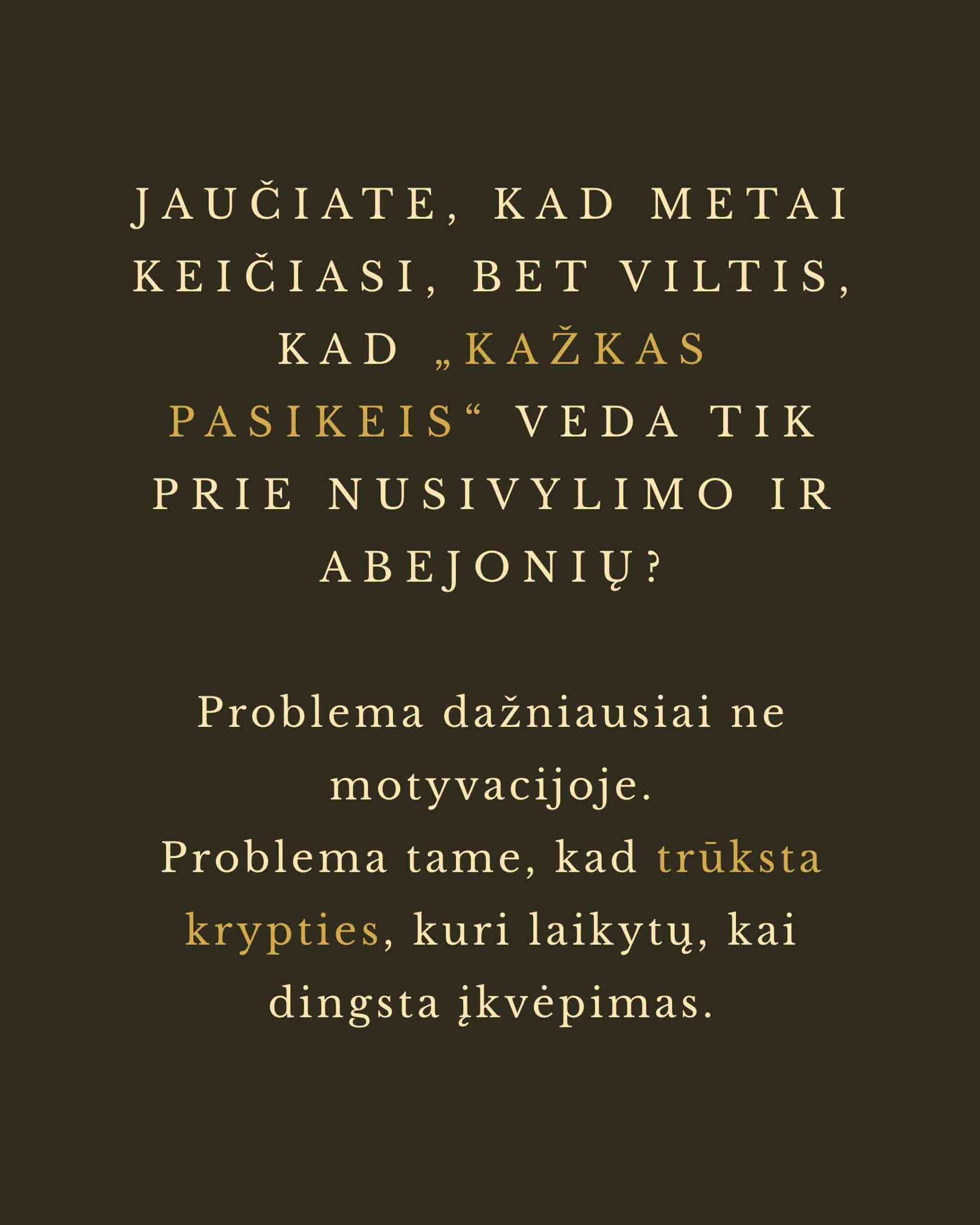 JAUČIATE, KAD METAI KEIČIASI, BET VILTIS, KAD „KAŽKAS PASIKEIS“ VEDA TIK PRIE NUSIVYLIMO IR ABEJONIŲ?