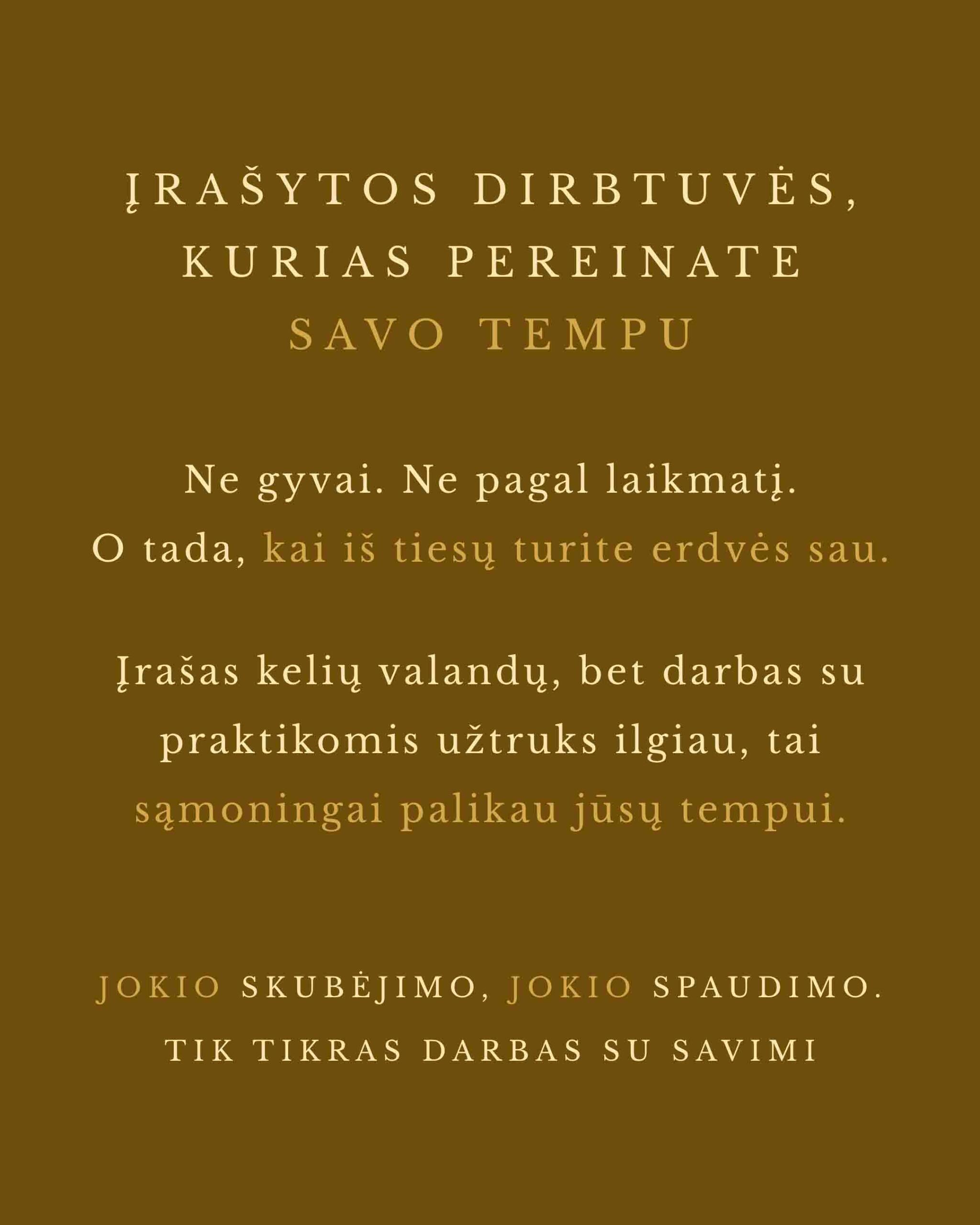 Jokio skubėjimo. Jokio spaudimo. Tik tikras darbas su savimi.