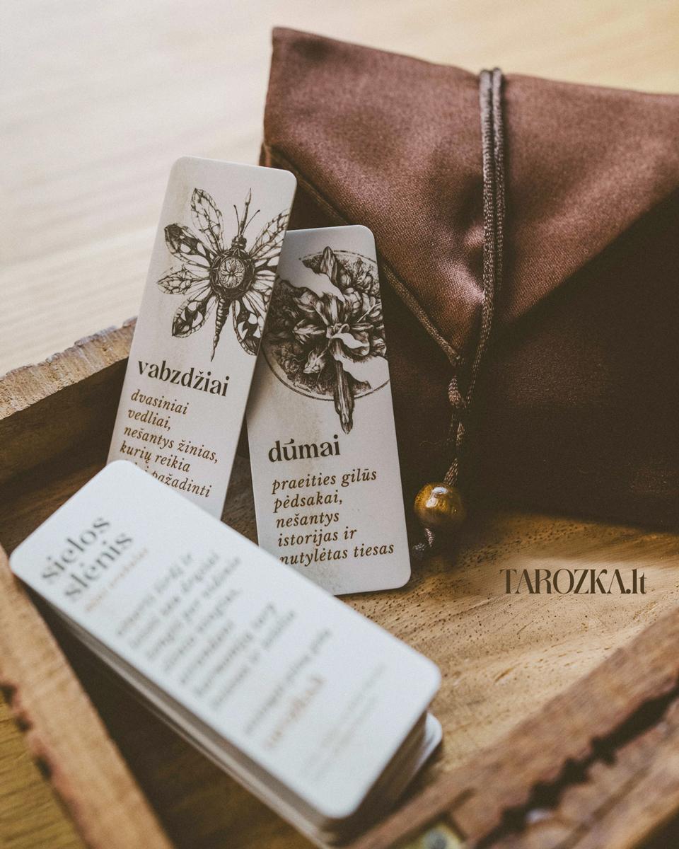 Sielos Slėnio orakulas gimė būtent iš šio poreikio. Tai kvietimas leistis į daugiasluoksnę vidinę kelionę, be spaudimo ir be skubėjimo. Orakulą sudaro 44 kortelės, kiekviena jų yra tarsi tylus simbolinis fragmentas Tavo vidinio kraštovaizdžio. Jos atspindi būsenas, patirtis ir vidinius procesus, kurie formuoja Tavo santykį su savimi ir kryptį, kuria judi gyvenime.